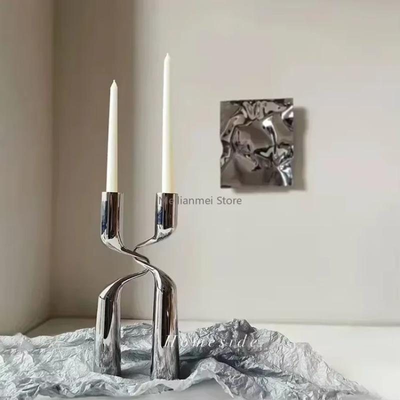 Silver Candle Holder Metal Candelabra Luxury Double Headed Center Table Candle Holders Living Room Home Decoration Gift Ideas