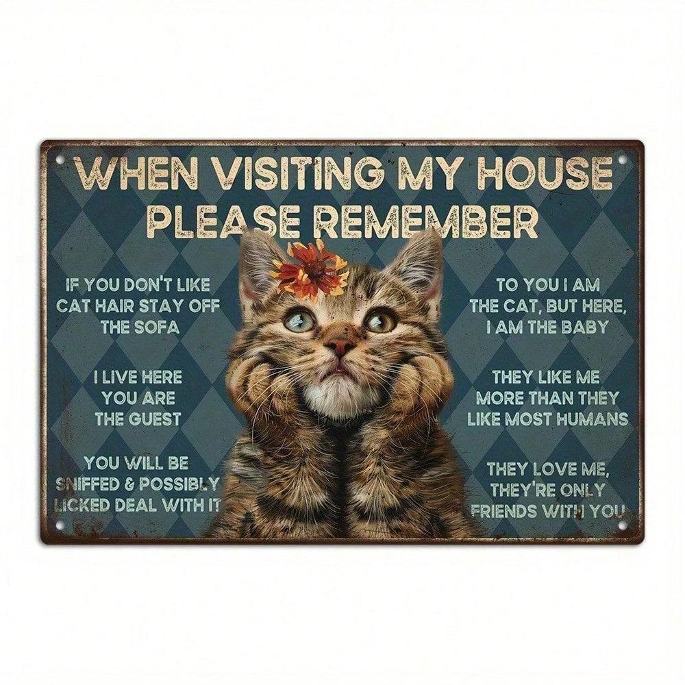 Vintage Funny Cat Tin Sign Wall Decor with Humorous Cat Hair Warning, Metal Plaque for Home Kitchen Bar Garden, Unique Gift for