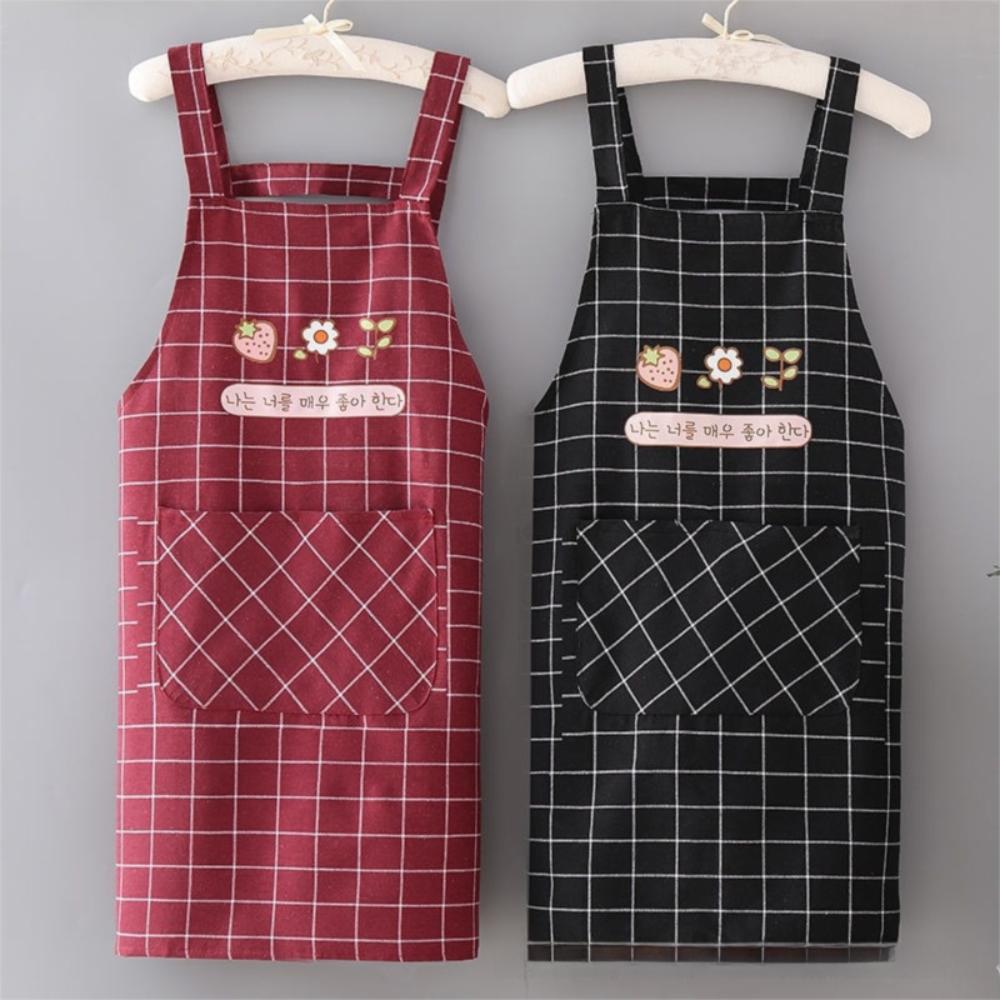 Comfortable Adjustable Cotton Apron with Pocket Waterproof Cooking Apron Breathable Oil Proof Bib Apron Kitchen