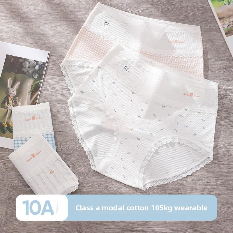 Large Size Women's Spring and Summer Plaid 10a Antibacterial Extended Crotch Triangle Briefs