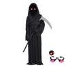 Transform your child into a spine-chilling specter this Halloween with this eerie costume set. Crafted from a comfortable cotton blend, this ensemble features a haunting design complete with luminous red eyes that glow mysteriously in the dark, adding an extra layer of frightful fun. The set is complemented by a menacing scythe, perfect for completing the chilling reaper look. Ideal for a night of trick-or-treating or Halloween parties, this costume offers both style and comfort for your little one.