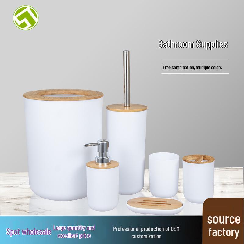 Bathroom Accessory Set: Toiletry Bottles, Toilet Brush, and Trash Can