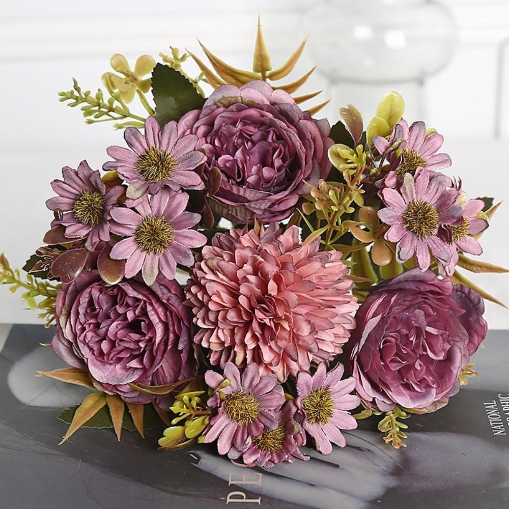 Peonies Design Simulated Flowers Landscape Colorful European Style Peonies Terrain Model Scenery Model Brides Holding Flowers