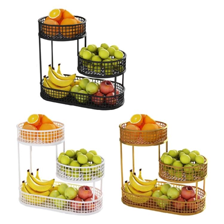 Improve your kitchen organization with this multi row metal fruit tray, designed for efficient fruit and snack categorization while saving countertop space with its compact, rust resistant structure.