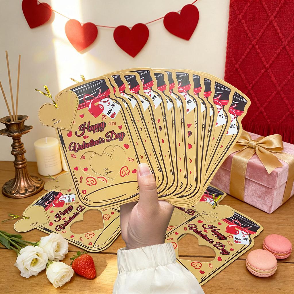 Valentine's Day Candy Cards With Drifting Bottle Shaped Cards For Valentine's Day Party Gift Exchange