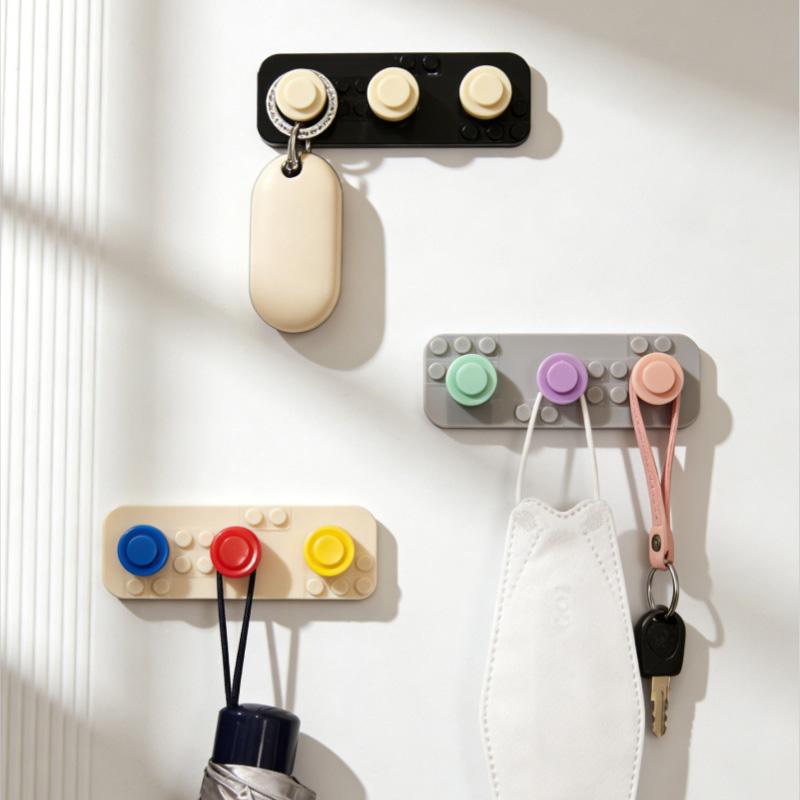 Nail Free Magnetic Hook Building Block Shaped Sticky Hook Wall Storage Rack Bedroom Wall Hanging for Key Whiteboard Refrigerator