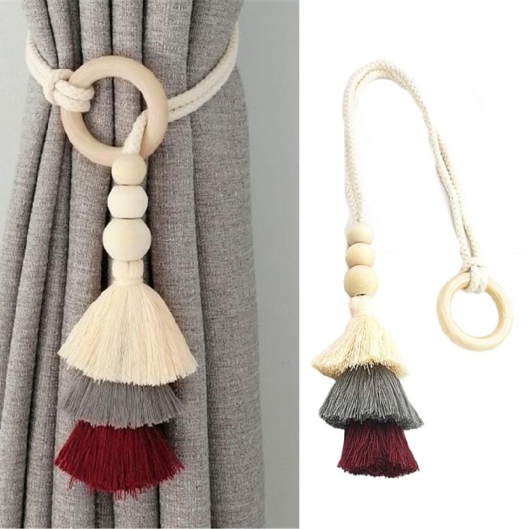 2 Pack Cotton Rope Curtain Holdbacks Ties Decorative Drapery Clip With Fringe and Wooden Beads for Living Room Decors