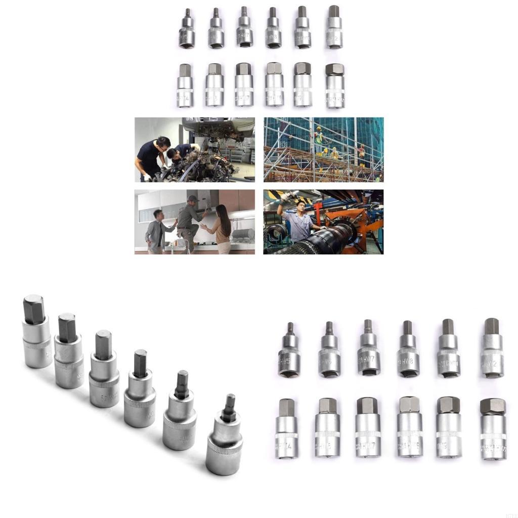 H7EE 12Pcs Inch Bit Socket Set Allen Socket Bit H5-22 Ratchet Socket Wrench Adapter Head for Torque Spanners