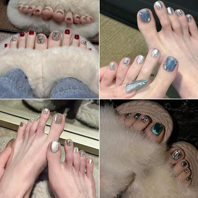 24Pcs Toe Nails Fake Nails Nail Sticker Jelly Glue Press On Rhinestone Nails French Nail Manicure Set Nail Care Tool Nail Salon
