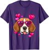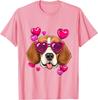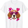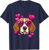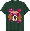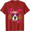 Beagle Heart Sunglasses Valentines Day Dog Lover Graphic Tee Casual Cotton T-Shirt