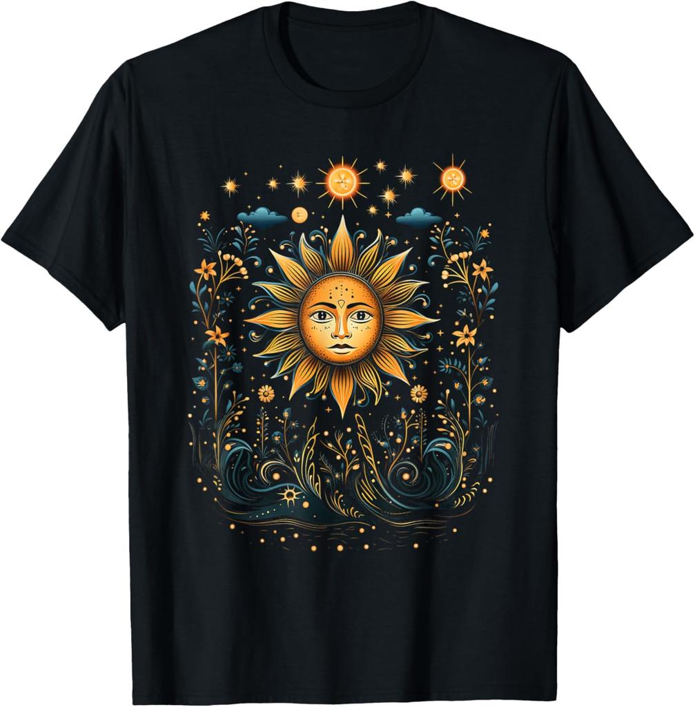 Mystic Celestial Sun Face Floral Graphic T-Shirt Casual Short Sleeve O-Neck Tee For Men