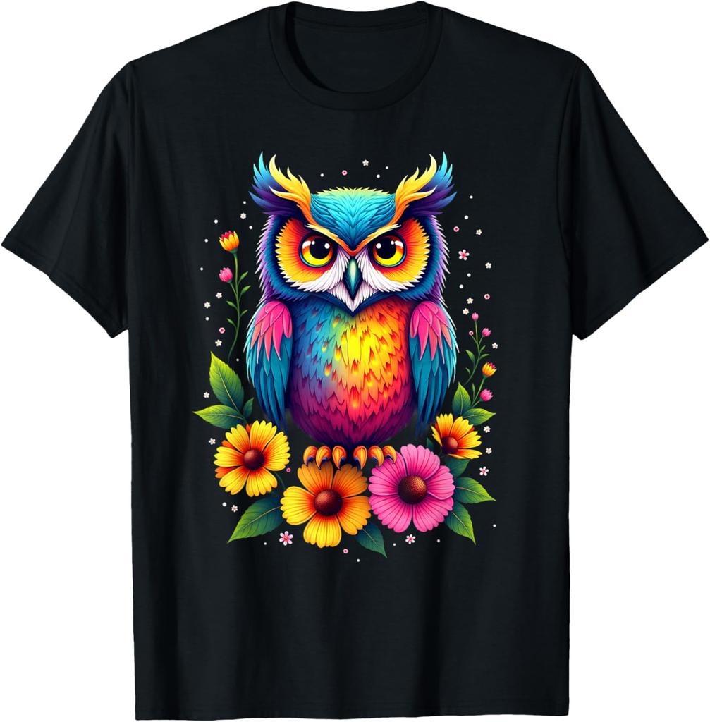 Colorful Rainbow Owl Graphic Tee Men's Cotton Casual Round Neck T-Shirt Trip