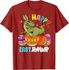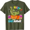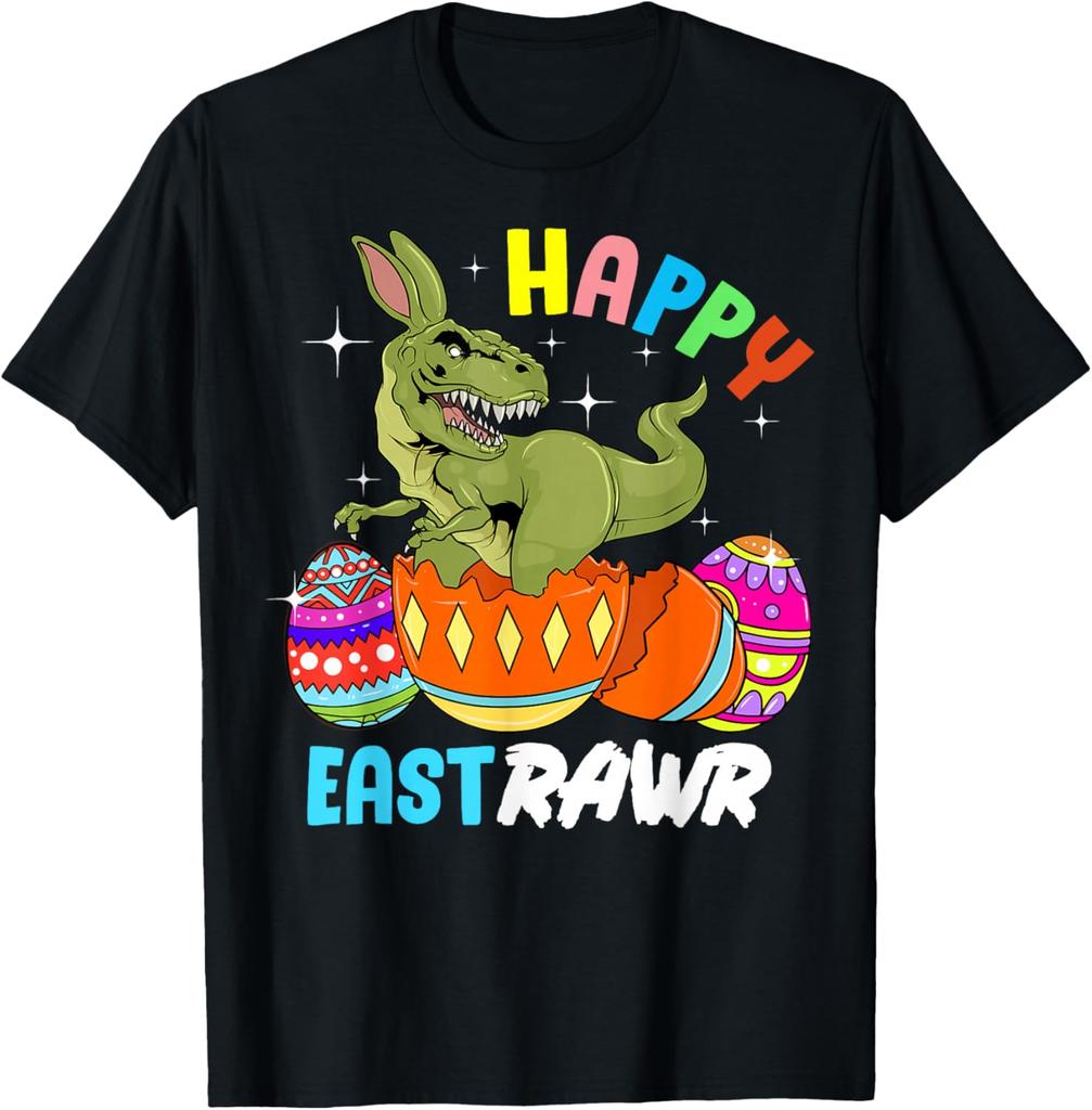 Happy Eastrawr Dinosaur Bunny Easter Egg Graphic Tee Cool Men's Casual Cotton T-Shirt