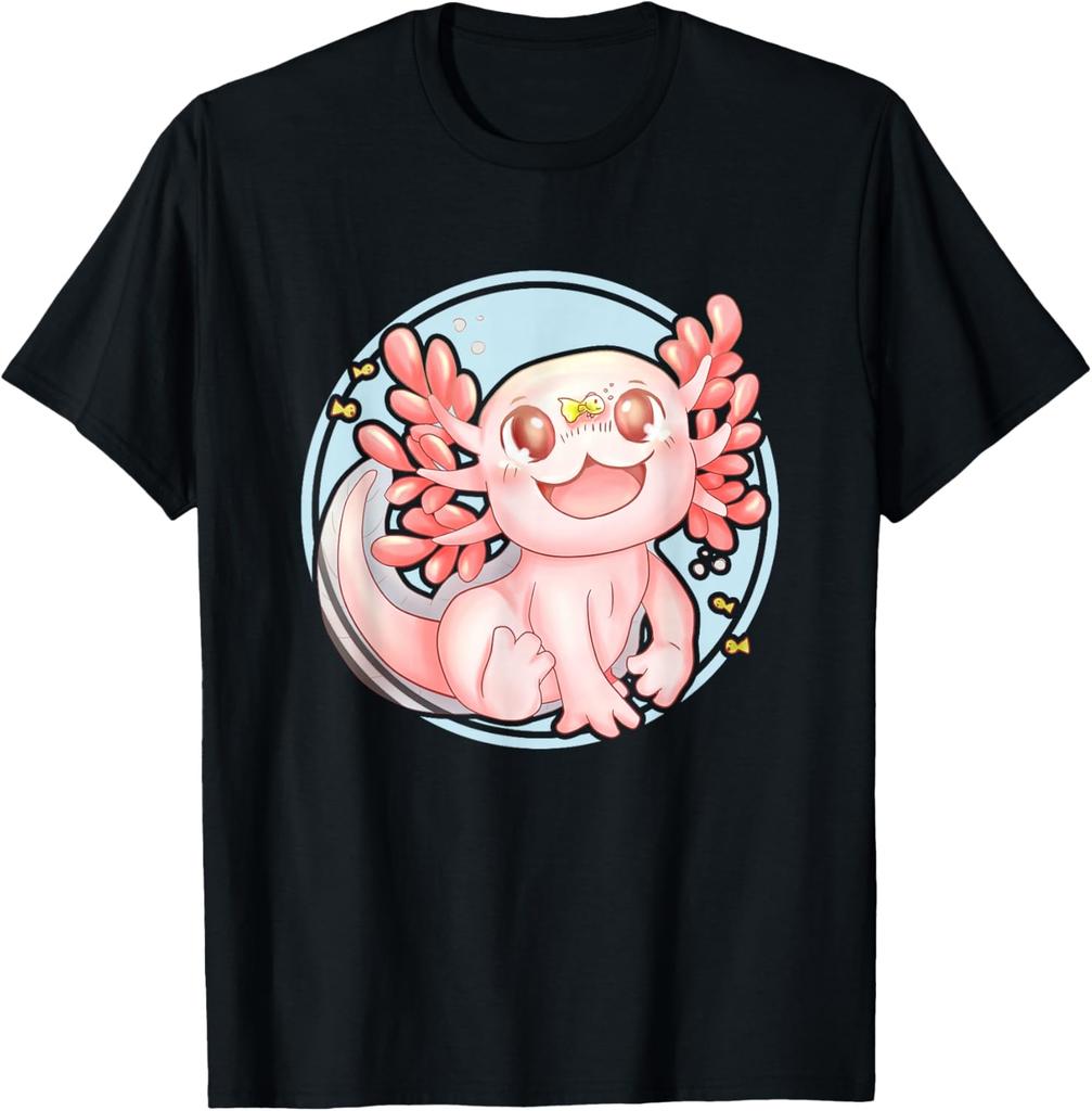 Kawaii Axolotl Cute Pink Amphibian Graphic Tee Soft Cotton Casual Crew Neck T-Shirt for Men