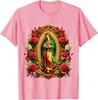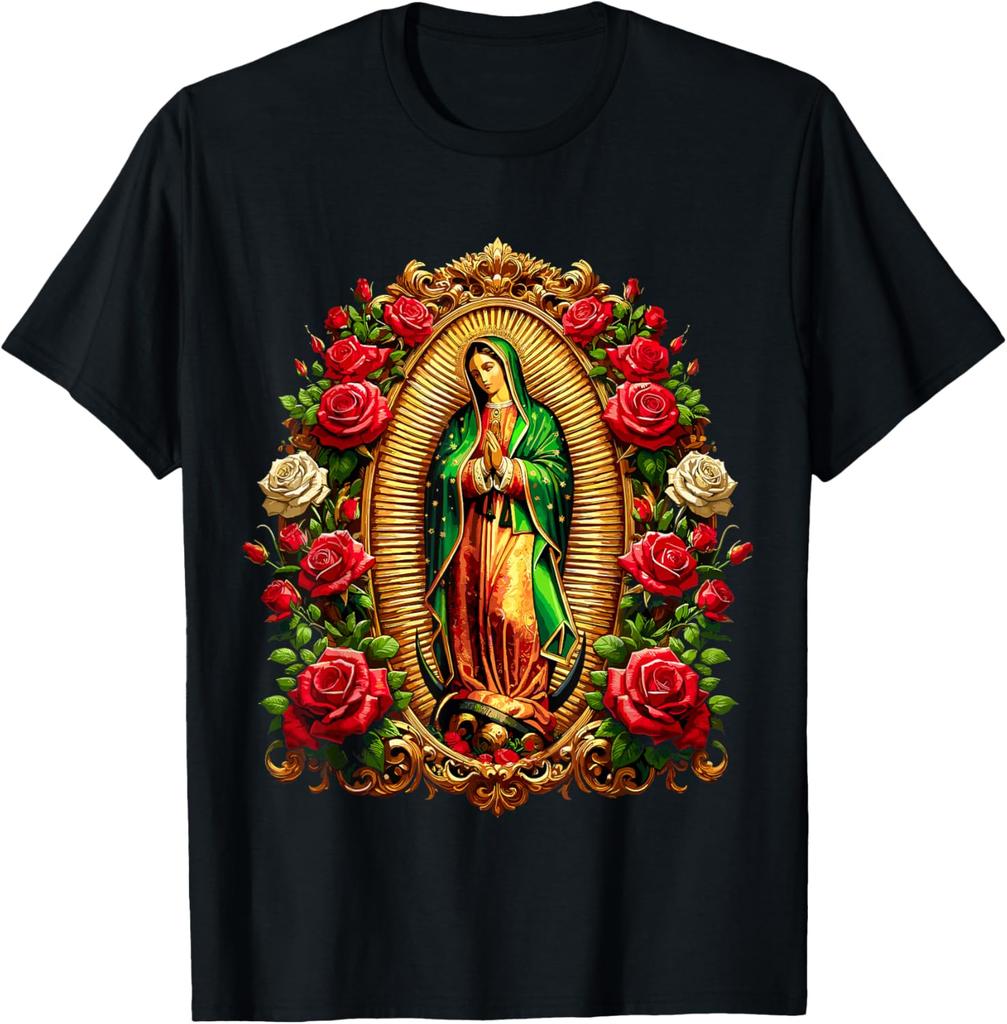 Virgen De Guadalupe Religious Graphic Tee Men Casual Cotton Rose Print T-Shirt