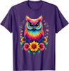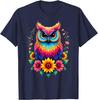 Colorful Watercolor Owl Sunflower Graphic Tee Breathable Cotton Casual Trip T-Shirt