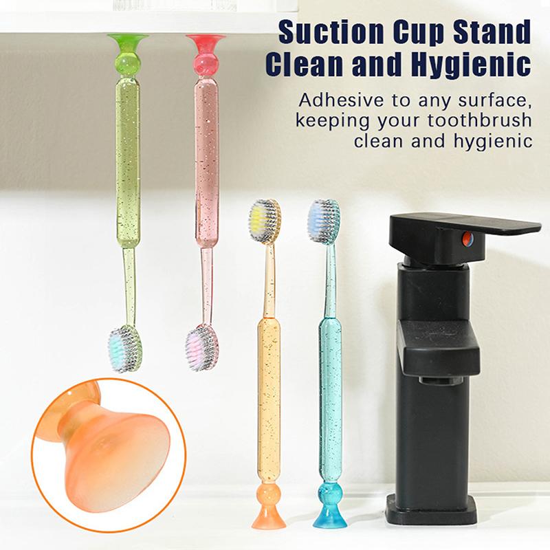 Extra-Long Brush Head Antibacterial Soft Bristle Toothbrush With Non-Slip Handle And Suction Cup Base Upright Design