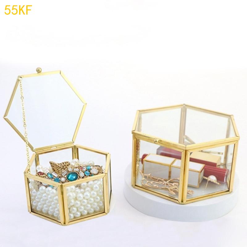 55KF Clear Glass Jewelry Box Jewelry Organize Holder Rings Box Necklaces Earrings Box