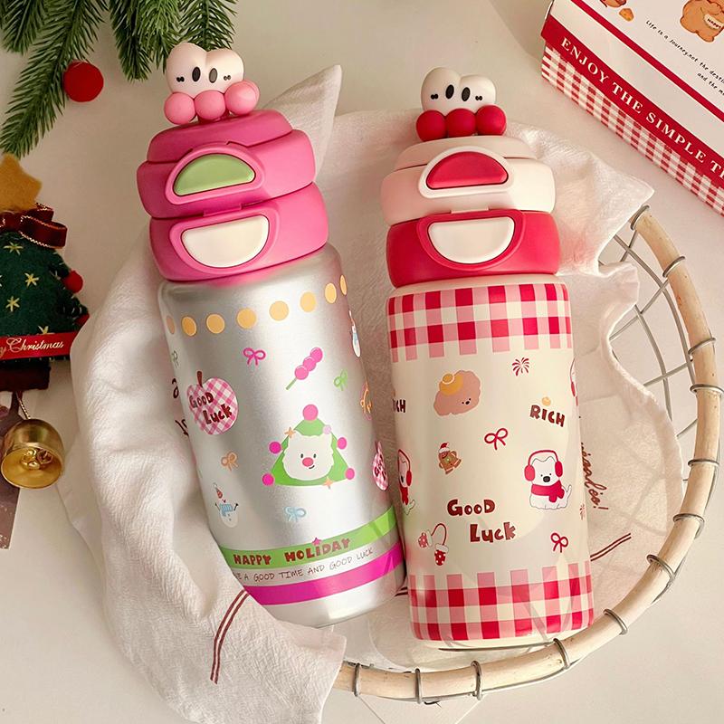 1000ML Thermos Water Cup For Girls Ice Coffee Cup With Handle Straw Tumbler Large Capacity 316 Stainless Steel Insulated Cup