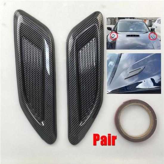 Pair Car Air Flow Intake Hood Scoop Vent Bonnet Cover Trim Carbon Fiber Look ABS