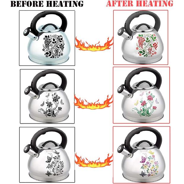 ❤DISPLAY BEAUTIFUL COLORFUL PATTERNS AFTER HEATING -The original pattern of the teapot is black,But as the temperature rises, you will find that the black flowers of the kettle gradually become lifelike colorful flowers. It is a very magical color-changing teapot,Whether it is used or placed, it add an aesthetic appeal to your kitchen, perfect conversation piece as you enjoy your coffee or meal with friends
