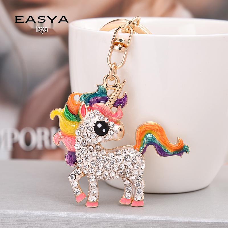 Unicorn Pendant Keychain with Diamond Inlay and Enamel Design
