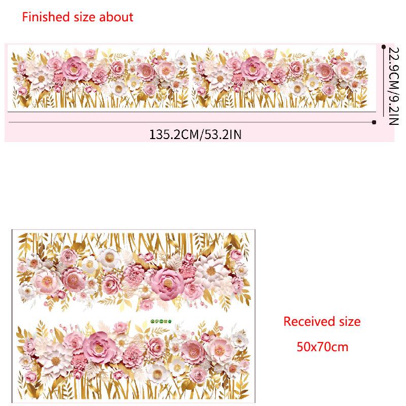 Pink Rose Removable Waterproof Baseboard Wall Sticker for Bedroom and Living Room Home Decoration