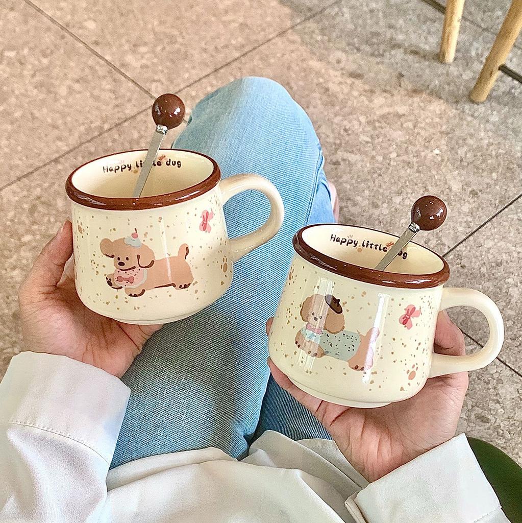 High-value Ins Wind Mug, Cute Puppy Coffee Cup, Household Ceramic Water Cup, Birthday Gift for Girls