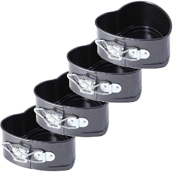 JMXC Set of 4 Mini Non-Stick Spring Pan, 4 Inch Heart Shaped Cake Pan, Sturdy Steel, Hand Wash