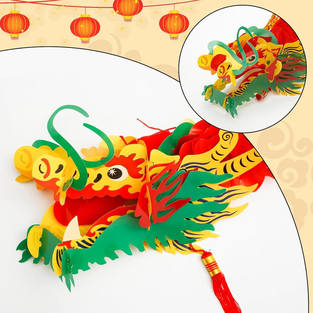 2pcs Chinese New Year Dragon, Chinese Dragon Garland Hanging Decoration with 1 Lantern for Spring Festival Lunar New Year Party Home, Shops,
