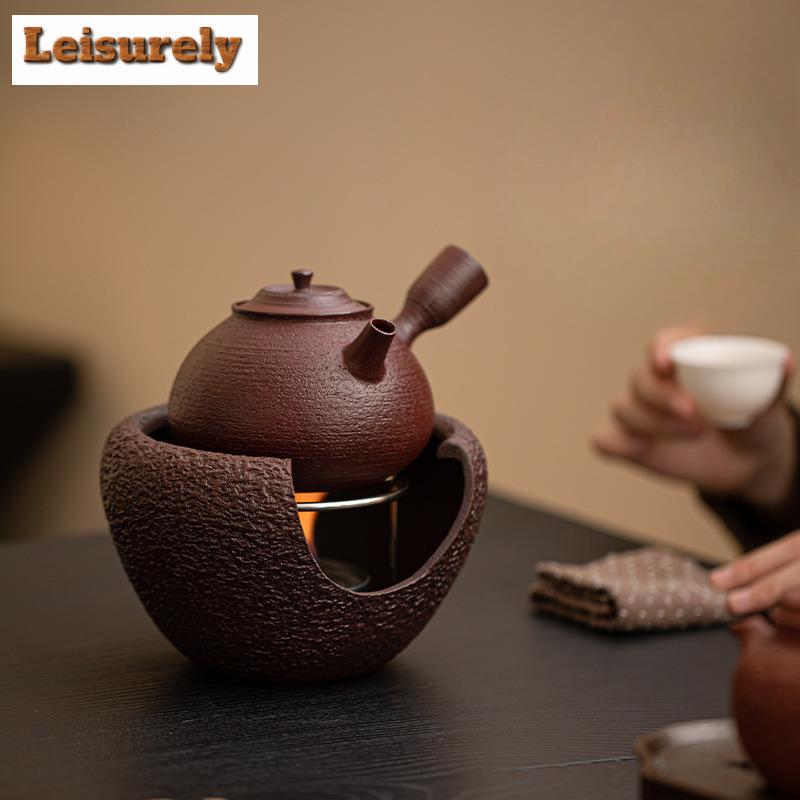 Brown Red Old Rock Mud Tea Warmer Holder Candle Heater Stove Household Kettle Stand Baked Milk Jar Carbon Furnace Cha Decoration