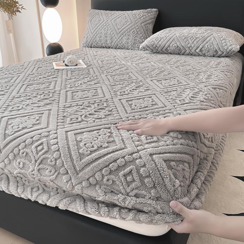 WOSTAR Winter Warm Coral Fleece Fitted Sheet Elastic Mattress Protector Cover Retro Style Bed Linens Luxury Double Bed King Size