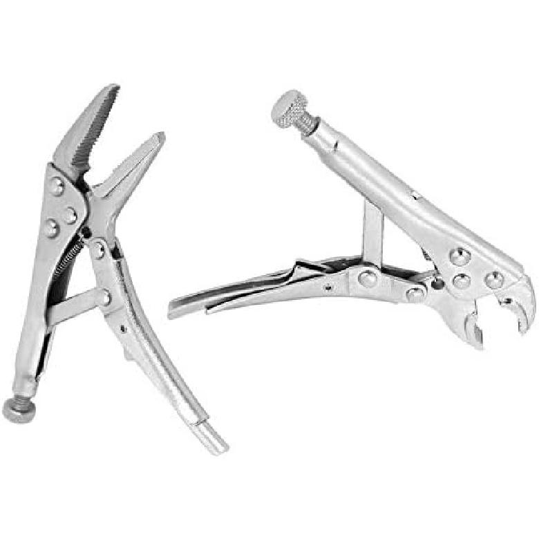 2pcs Locking Pliers Set, 4.3in Ground Mouth 4.9in Straight Jaw Lock Clamp Locking Pliers Tool