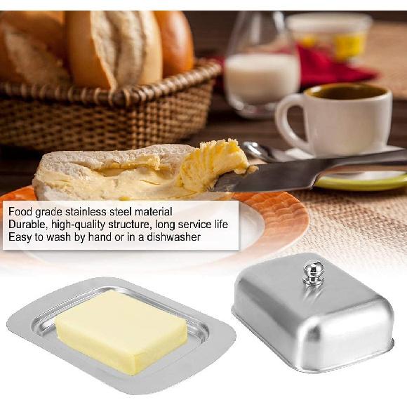 Butter Dish with Cover, Stainless Steel Butter Container Butterie Butter Dish for Kitchen Countertop Refrigerator, 7.3x4.8x2.8in