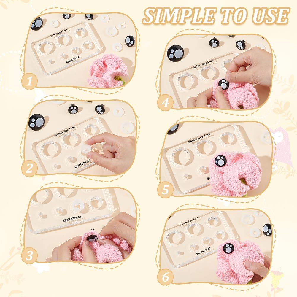 BENECREAT Acrylic Clear Safety Eye Insertion Tool, Washer Installation Aid, Crochet Tool for DIY Craft, Plush Bear Eye Installation, Doll Making