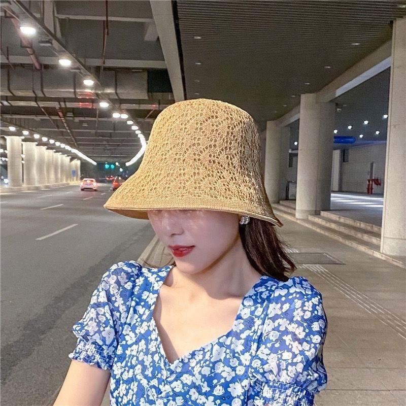 Double-sided Bucket Hat Summer Women's New Sunscreen Sun Hat Sunscreen Hollow Thin Breathable Face Cover Knitted Sun Hat