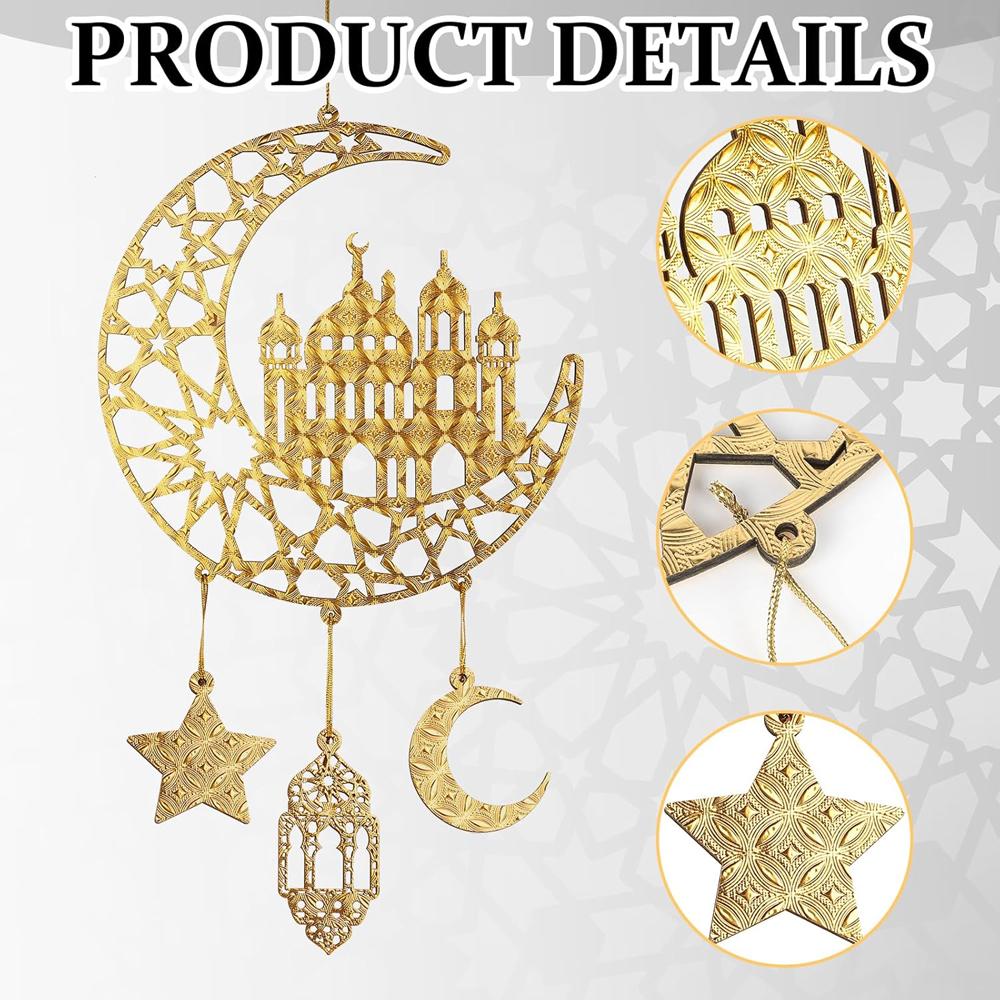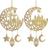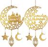2pcs Wood Ramadan Decoration Islamic Moon & Hollow Star Wall Signs For Front Door Home Party Supplies