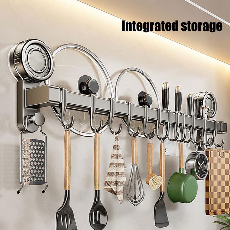 The Kitchen Utensil Hanger is a versatile organizer designed to maximize space in any area. Featuring a heavy-duty suction cup shelf, it provides a secure no-drill holder solution for your items. This removable hanger can be used in the bathroom, closet, cabinet, refrigerator, or garage. Its durable design ensures reliable performance while keeping your items neatly arranged and easily accessible. Perfect for decluttering, this multi-purpose utensil hanger suits various household needs.