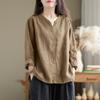 Autumn Women Vintage Cotton Blouse Fashion Solid Loose Shirt Work Tunic Blusas Mujer V Neck Long Sleeve