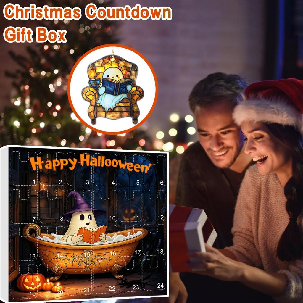 Ghost Countdown Calendar 2025 24 Days 2D Acrylic Reading Ghost Ornament Advent 2025 Spooky Charm For Kids Bookshelf Wall Window