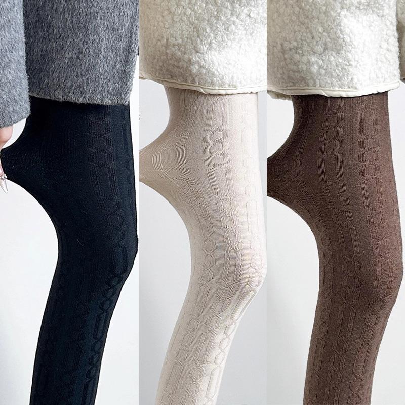 Korean Simple Vertical Striped Tights for Women Vintage Thermal Light Slimming Stockings Winter Versatile Pantyhose Leggings