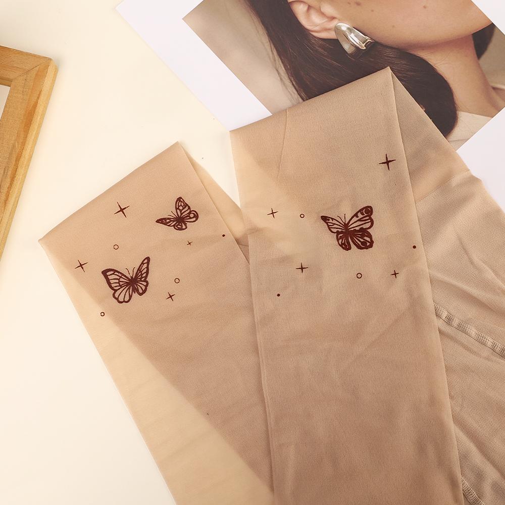 Sexy Women Complxion Tights Vintage Y2K Butterfly Print Transparent Silk Pantyhose Girls Lolita Summer Thin Thight High Stocking