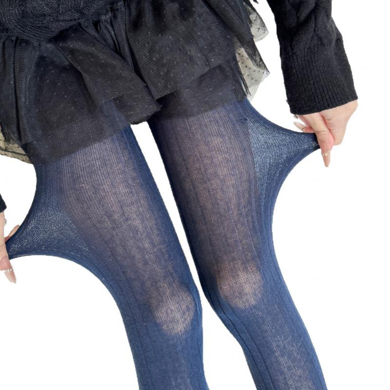 40-52kg Women Cotton Pantyhose 2025 Autumn Tights Oatmeal Color Wide Strip Navy Blue Vertical Pattern Transparent Leggings Micro