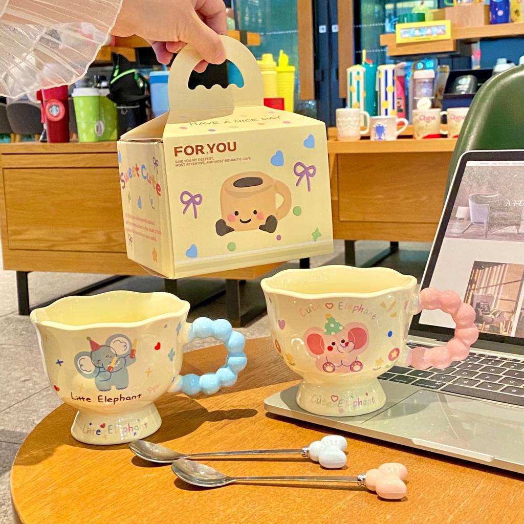Color: large quantity and excellent price [one piece], (single cup) blue elephant, (single cup) pink elephant, (free spoon) pink elephant, (free spoon) blue elephant, [gift package] blue elephant, [gift package] pink elephant, butterfly spoon [Please note for color]