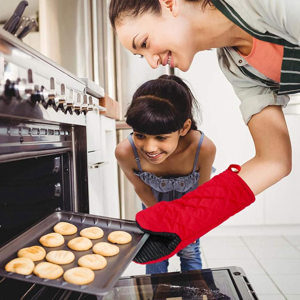 Puppet Oven Mitts Red Cotton Silicone Non-Slip Long Sleeve Arm Soft,Oven Gloves for Women Mum Hot 500℉ Heat Resistant Hand Safe Microwave Home