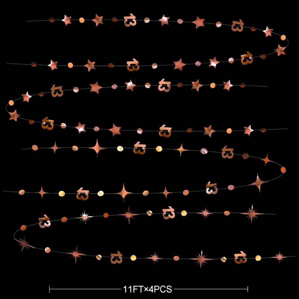 👍 Package includes - 4 strings of 11.5 feet/3.5 meters rose gold number 13 sparkling twinkle star and circle dots garlands , totally is 46 feet/14 meters