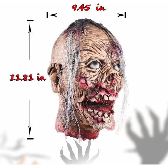 Scary Halloween Decorations Props - Life-Size Hanging Bloody Latex Severed Zombie Head for Haunted House Decor, Indoor Outdoor Halloween Party Yard