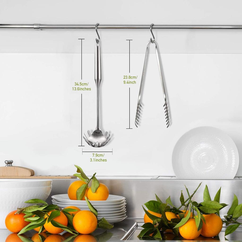 Patelai 2 Pcs Stainless Steel Pasta Spoon with Teeth Large Spaghetti Utensil, 9.4'' Tong and 13.6'' Pasta Fork with Vacuum Handle, Comfortable Grip