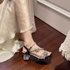 French Rhinestone Bow Fairy Style High Heel Sandals Female Summer Fashion Beautiful Silver Thick Heel with Sandals