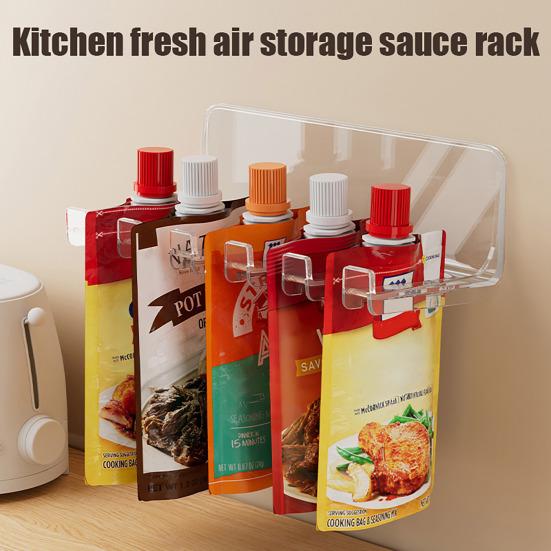 1/2Pcs Storage Rack Hanging Wall Organizer Large Capacity Sauce Bags Condiment Bottles Transparent Frame Space Saving Kitchen Rack
